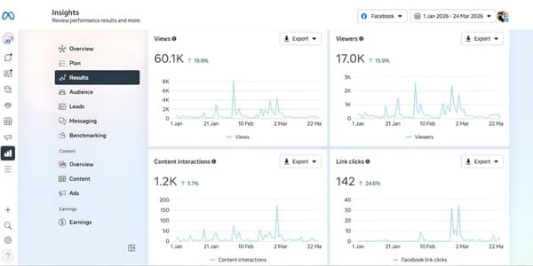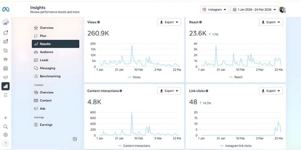 With metrics such as reach, engagement, click-through rates, conversions, and growth in followers.
